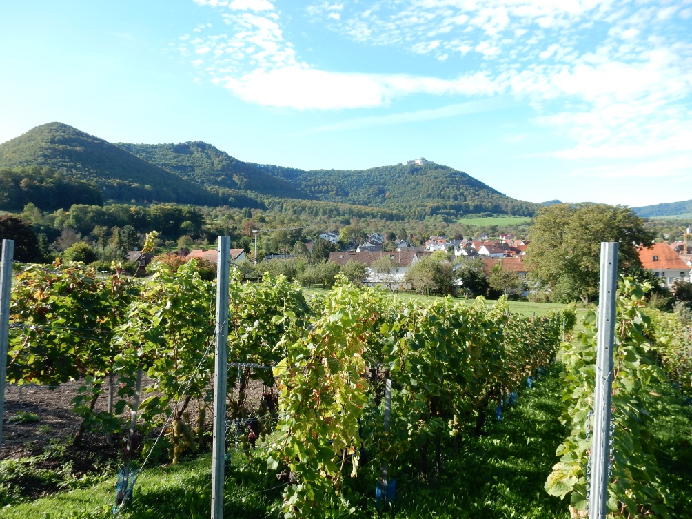 Unser Weinberg liegt an einem Sonnenhang unter dem Beurener Fels, mit Sicht auf den Hohenneuffen.